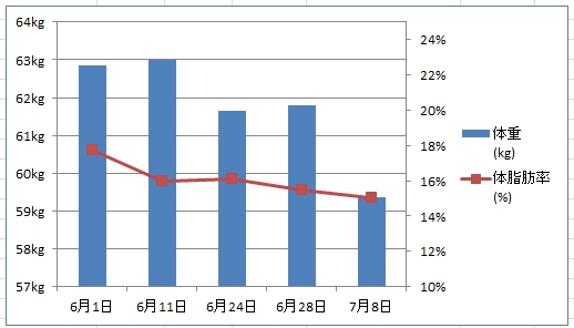 その後2ヶ月たまに体重計測したデータも含めての経過です。