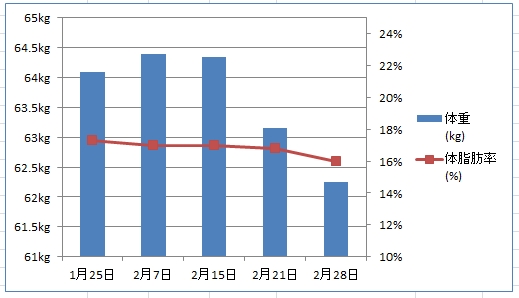 1ヶ月で2.5kg減りましたが脂肪は減らず筋肉が減っただけという・・・