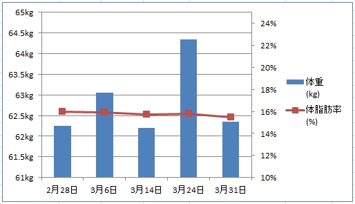 4月30日時点で体重61.4kgなんですが、私の記憶では61kgとかって確か中学生の頃の体重です。